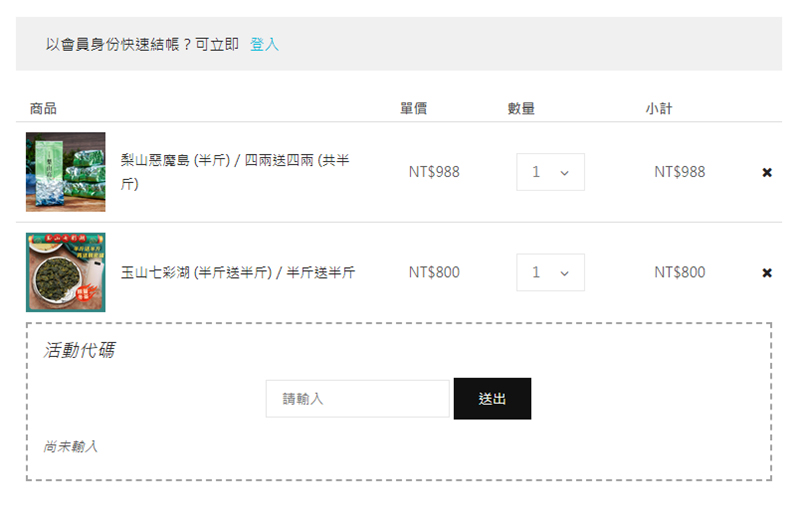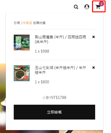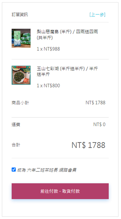 檢查選購品項和數量後進入結帳頁