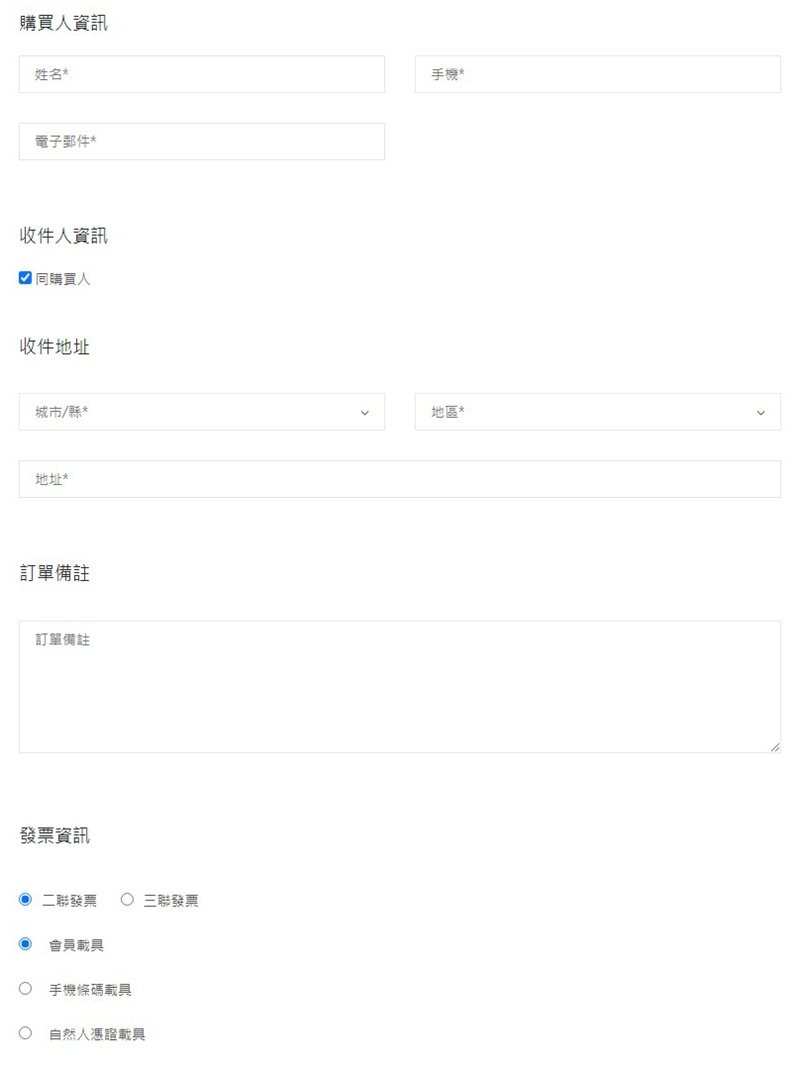 結帳頁填寫訂購資料與聯絡方式
