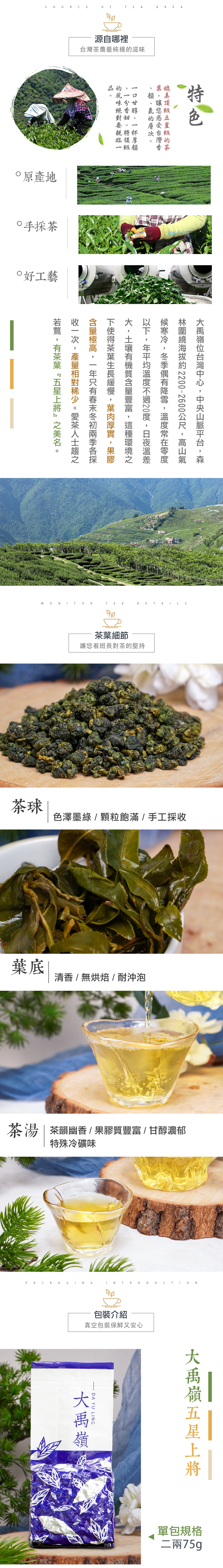 大禹嶺五星上將 海拔2500公尺▪ 湯色:清澈蜜黃▪ 口感:果膠質豐富、紮實山氣韻、甘醇濃郁、耐沖泡